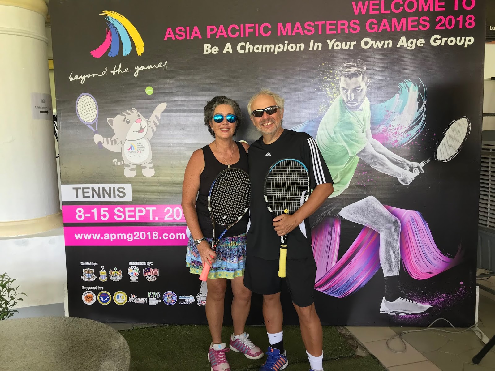 I know the title of the blog is Grey Nomad and all that but I didn't really think that I was that old. Or looked it. At least until the last few days when I've been playing in the Asia Pacific Masters Games of 2018 which were held in Penang. The tennis which Viv and I entered -- me enthusiastically, Viv a bit less so -- was held at the Penang Sports Club. Our new home club in fact. And it wasn't until the last couple of days that photos were being taken in large quantity that I realized the situation.